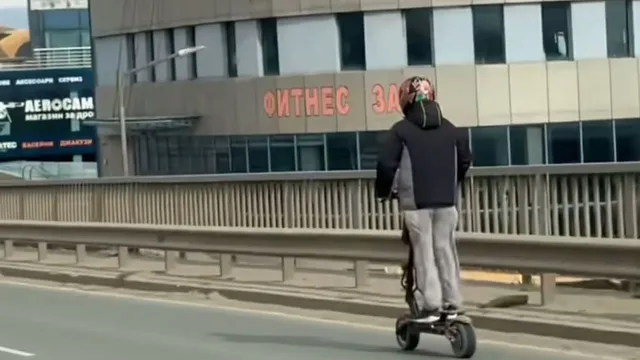 Дете на видима възраст 14-15 години "лети" с тротинетка със 66-70 км/ч на Околовръстното шосе в София.