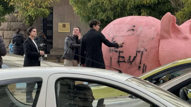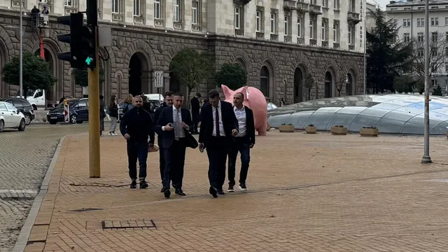Розовото прасе – политическата инсталация, поставена тази сутрин от „Продължаваме промяната“ в Триъгълника на властта като символ на Бюджет 2026 – продължава да предизвиква политически турбуленции.
