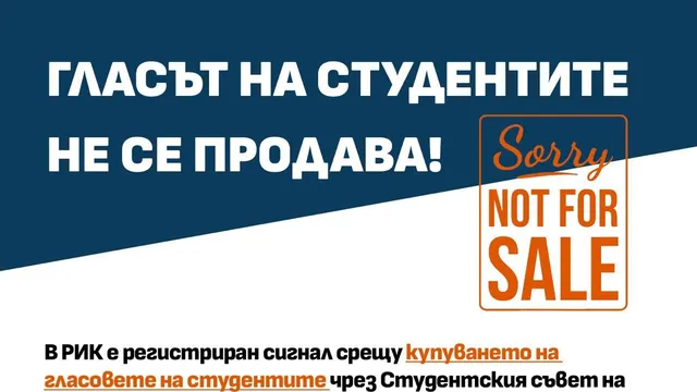 Сигнал за съмнение за купуване на гласове на студенти чрез Студентския съвет на УНСС в полза на кандидат от "Прогресивна България" е подаден до Централната избирателна комисия, съобщиха от Обединение "Студенти против мафията".