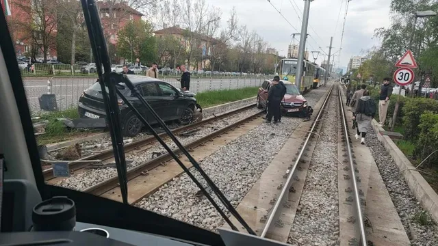 Трамвайното движение в София беше блокирано след сериозна катастрофа на трамвайната спирка, при която два автомобила са излезли извън пътното платно и са попаднали върху релсите.