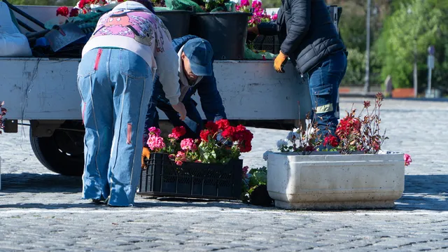 Столична община подновява саксиите с цветя около храм-паметника "Св. Александър Невски", видя репортер на Таралеж.