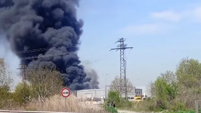 Видео на ТАРАЛЕЖ показва как пламъците се виждат ясно от района на Кукленско шосе, като гъст дим се издига над индустриалната зона.