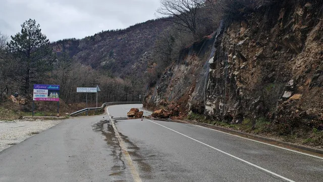 В последните часове обаче огромна скална маса е покрила напълно пътното платно между Белица и Загражден, което е довело до пълно спиране на трафика в участъка.