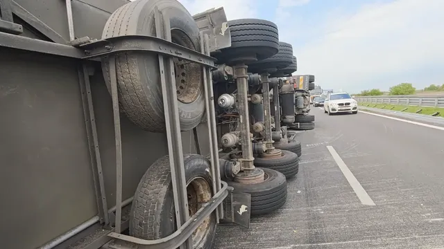 Заради необходимостта от използване на тежка техника за изваждането на камиона, движението в платното в посока София ще бъде временно спряно.