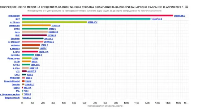 На първо място по привлечени средства продължава да е ТВ Евроком - 145 059 евро., което е ръст с около 35 хил. евро. спрямо началото на кампанията.