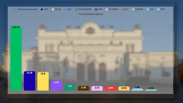 ГЕРБ-СДС изпревариха "Продължаваме промяната - Демократична Бългаия" на второто място като ги дели около 1 процент: